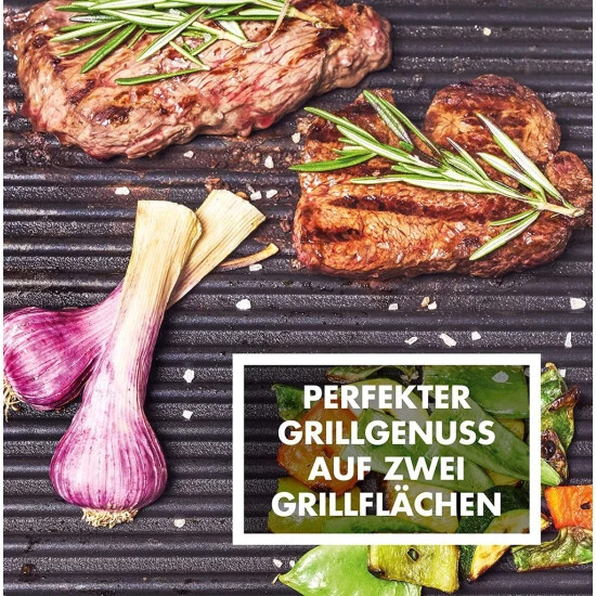 - Zwei getrennt regelbare Grillflächen